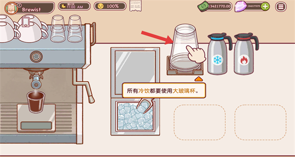 2、制作冷飲時,選擇大玻璃杯,按提示操作,確保容器符合冷飲制作要求。