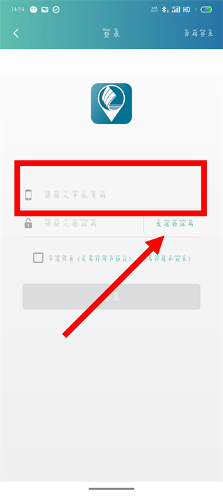 3、在登錄頁面,輸入手機(jī)號碼后,點(diǎn)擊發(fā)送驗證碼。