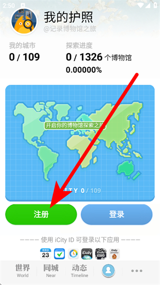3、在我的頁面,點擊注冊,進(jìn)入iCity ID賬號注冊流程。