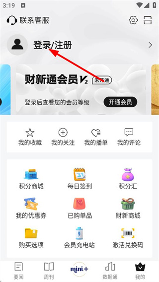 2、在個人頁面點擊登錄注冊,進(jìn)入登錄頁面。