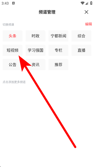 2、在頻道管理頁(yè)面,點(diǎn)擊短視頻頻道,進(jìn)入短視頻頁(yè)面。
