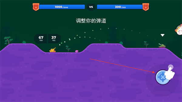 1、進入游戲后,調(diào)整右側(cè)彈道控制按鈕,注意坦克炮彈的發(fā)射軌跡。