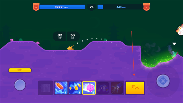 2、瞄準(zhǔn)敵方目標(biāo)后,點擊下方開火按鈕,發(fā)射炮彈攻擊敵方坦克。