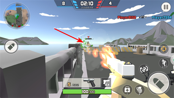 3、瞄準(zhǔn)敵人發(fā)起攻擊,可快速消滅對手獲取分?jǐn)?shù),這是提升戰(zhàn)績的關(guān)鍵操作,關(guān)注敵人移動軌跡提高命中率。