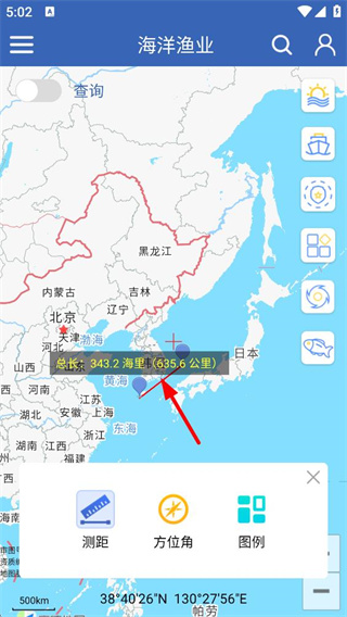 3、在地圖上進行點擊兩個位置進行測距操作,即可查看總長度等測距結果。