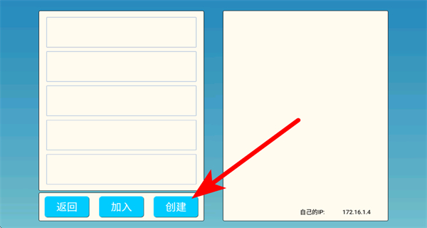 3、在聯(lián)機(jī)的界面,我們需要點(diǎn)擊創(chuàng)建的按鈕,正式的開始創(chuàng)建屬于自己的聯(lián)機(jī)房間。