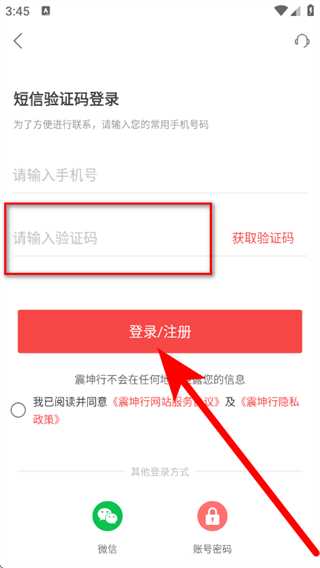 4、輸入驗證碼后,勾選后,點擊登錄注冊,完成操作。