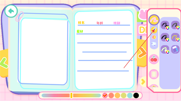 3、在右側(cè)選擇畫筆和貼紙圖案進(jìn)行手賬的編輯,可以填寫上寶寶的相關(guān)信息。