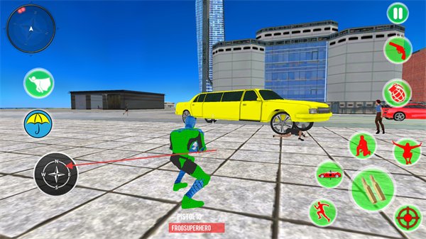 1、操控角色在城市場景移動,利用右側技能按鈕,如槍械等,攻擊敵人完成任務。