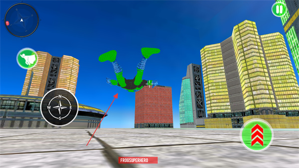 4、點擊飛行技能按鈕,讓角色在空中飛行,在高樓間穿梭探索城市。