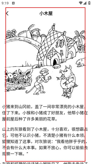 3、在故事詳情頁面,即可閱讀小木屋的故事內(nèi)容。