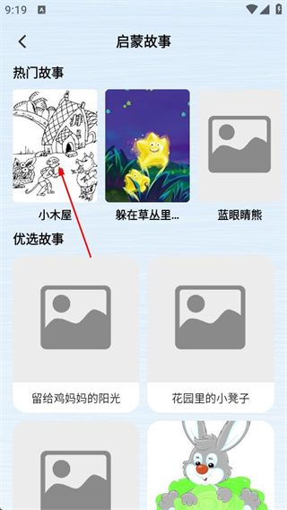 2、在啟蒙故事頁面,選擇要查看的故事,進入故事詳情頁面。