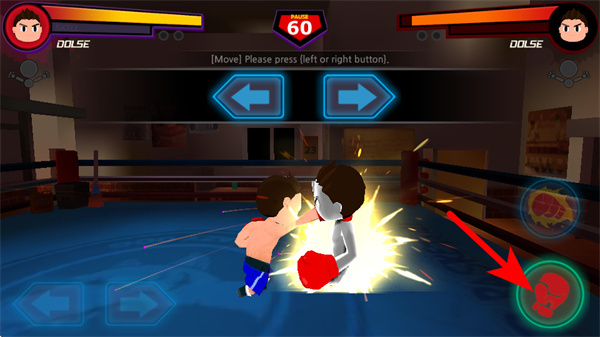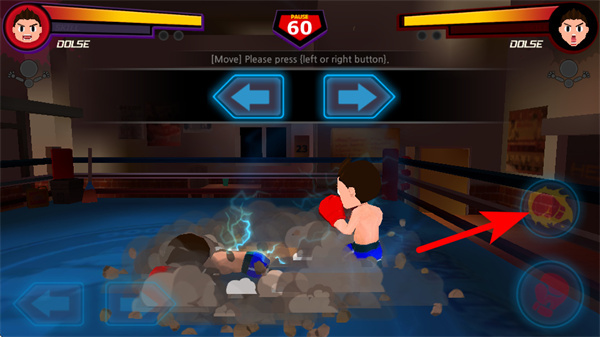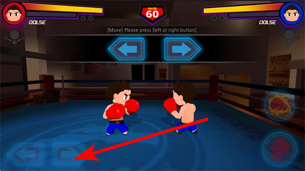 1、游戲中點擊左右方向按鈕,可操控拳擊手移動,調(diào)整位置關(guān)鍵操作,需根據(jù)對手位置靈活切換方向。