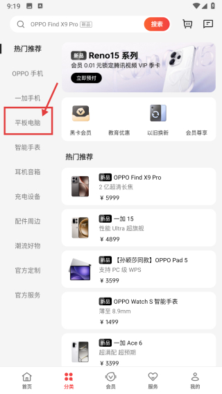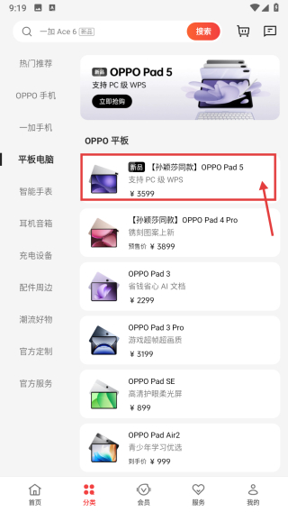 3、在平板產(chǎn)品列表里,選擇孫穎莎同款OPPOPad5條目,進入產(chǎn)品詳情頁。