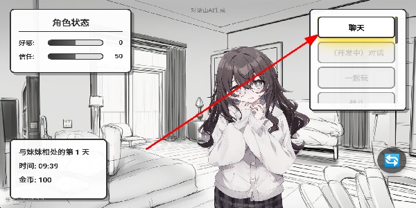 1、玩家可以選擇聊天功能,與妹妹開啟聊天互動,通過聊天提升好感和信任度,推進與妹妹的相處進程。