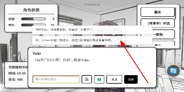 2、進行對話選擇,在聊天中選擇合適的對話選項,與妹妹交流,影響角色狀態(tài)的變化,提升游戲的互動體驗。
