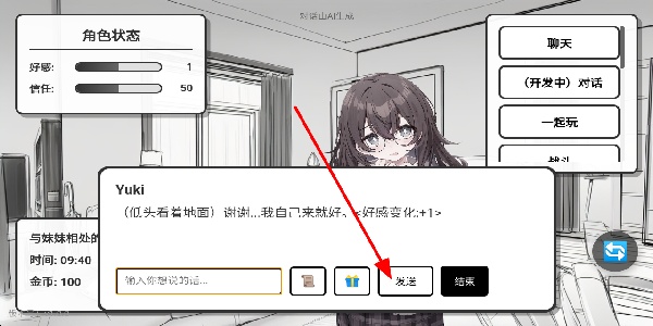 3、發(fā)送想說的話,在輸入框中輸入內(nèi)容并發(fā)送,與妹妹深入交流,增強情感連接,提升好感度,助力相處的發(fā)展。
