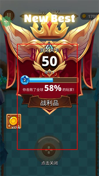 4、在結(jié)算頁面可以查看獲得獎(jiǎng)勵(lì),點(diǎn)擊關(guān)閉,即可繼續(xù)游玩。
