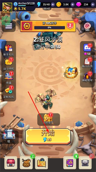 1、打開我是弓箭手,進(jìn)入到游戲主頁面,點(diǎn)擊開始進(jìn)入游戲。