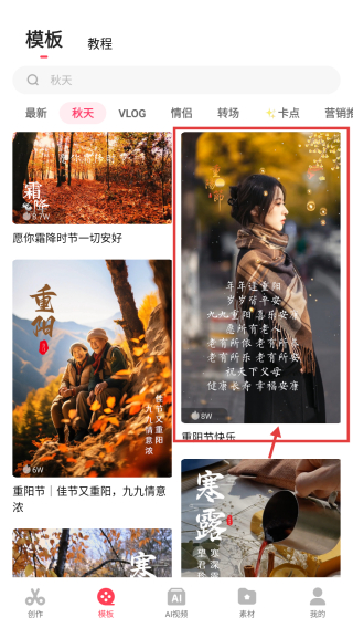 3、在秋天主題模板列表里,選擇重陽節(jié)快樂模板條目,進(jìn)入模板詳情頁。