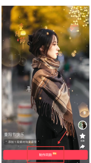 4、在模板詳情頁,點(diǎn)擊制作同款按鈕,開始制作同款重陽節(jié)主題視頻。