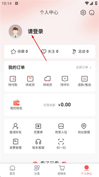2、在個人中心頁面,點擊請登錄選項,進入登錄頁面。