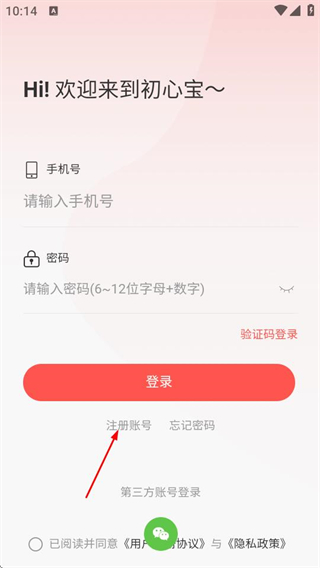 3、在登錄頁面,點擊注冊賬號選項,進入注冊頁面。