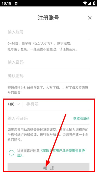 4、輸入手機(jī)號,獲取驗(yàn)證碼并輸入,點(diǎn)擊完成,完成注冊操作。