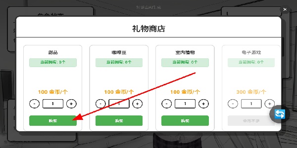 2、禮物商店用金幣購(gòu)買戰(zhàn)品、咖啡豆等禮物資源,用于提升與妹妹的好感度,助力互動(dòng)相處。