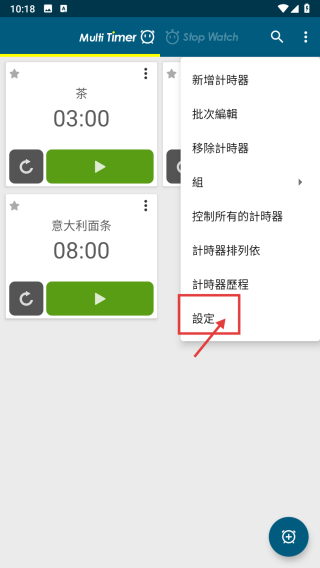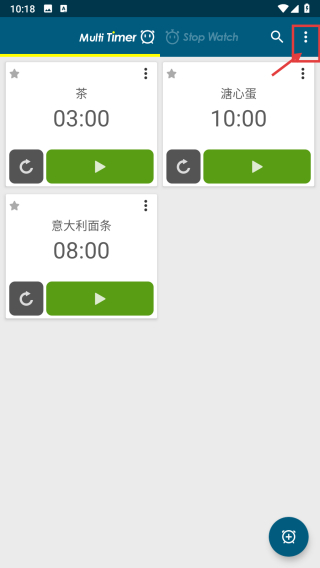 1、打開多計時器類APP,點擊右上角三點菜單按鈕,展開功能菜單。
