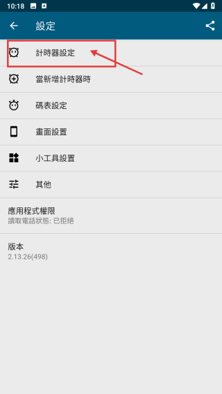 3、在設(shè)定頁面,點擊計時器設(shè)定選項,進入計時器設(shè)置頁面。
