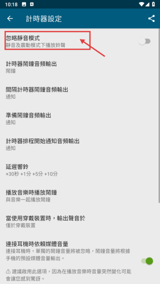 4、在計時器設(shè)置頁面,找到忽略靜音模式選項。