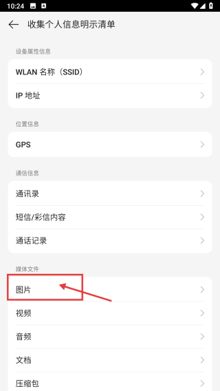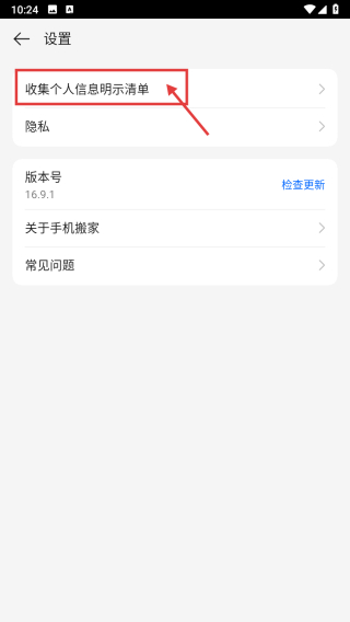 2、在設(shè)置頁面,點(diǎn)擊收集個(gè)人信息明示清單選項(xiàng),進(jìn)入信息清單頁面。