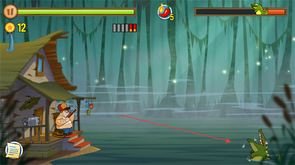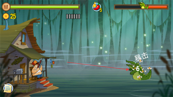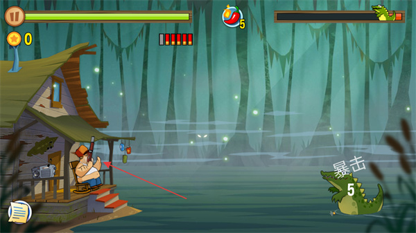 3、瞄準(zhǔn)鱷魚要害射擊,觸發(fā)暴擊,快速削減其血量,積累更多分?jǐn)?shù)。