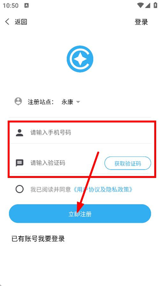 4、輸入手機(jī)號碼,獲取驗證碼并輸入,點擊立即注冊,完成注冊操作。