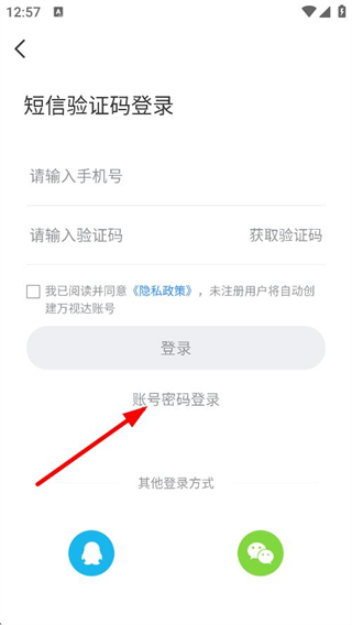 3、在登錄頁(yè)面,點(diǎn)擊賬號(hào)密碼登錄,切換到賬號(hào)密碼登錄界面。