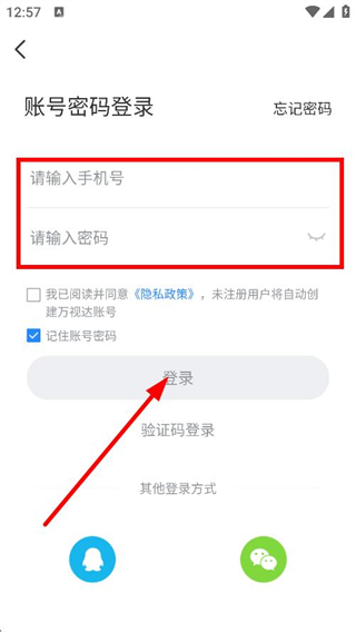 4、在賬號(hào)密碼登錄界面,輸入手機(jī)號(hào)、密碼,點(diǎn)擊登錄,完成登錄操作。