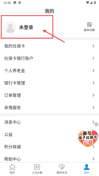 1、打開社保服務(wù)類APP,點擊底部我的選項,進(jìn)入個人中心頁面。