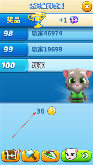4、參與湯姆貓的聯(lián)賽,獲取金幣和獎杯獎勵,提升排名。
