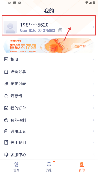 2、在個人中心,點擊用戶賬號區(qū)域,進(jìn)入賬號設(shè)置頁面。
