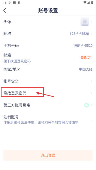 3、在賬號設(shè)置頁面,點擊修改登錄密碼選項,進(jìn)入密碼修改驗證頁面。