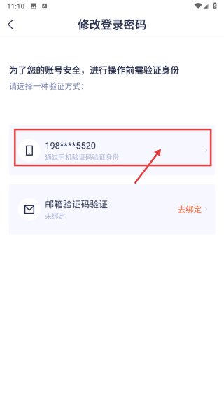 4、在密碼修改驗證頁面,選擇通過手機(jī)驗證碼驗證身份的方式,進(jìn)行后續(xù)密碼修改操作。