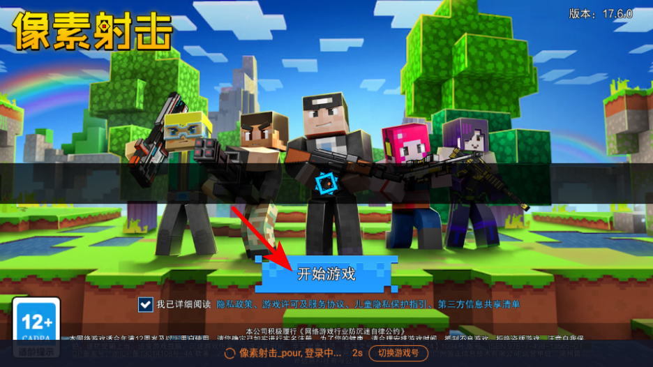 1、游戲中點擊開始游戲按鈕,可進(jìn)入像素射擊的游戲世界,這是開啟游戲的關(guān)鍵操作,點擊后將開啟射擊競技之旅。