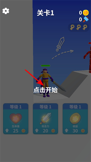 1、游戲中點(diǎn)擊點(diǎn)擊開始按鈕,可進(jìn)入關(guān)卡戰(zhàn)斗,這是開啟游戲的關(guān)鍵操作,點(diǎn)擊將參與角色對戰(zhàn)挑戰(zhàn)。