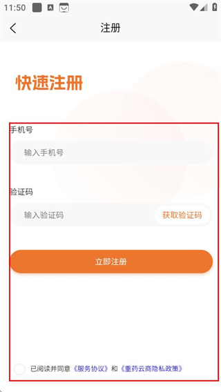 3、在注冊頁面,輸入信息,勾選協(xié)議后點擊立即注冊,完成賬號注冊。