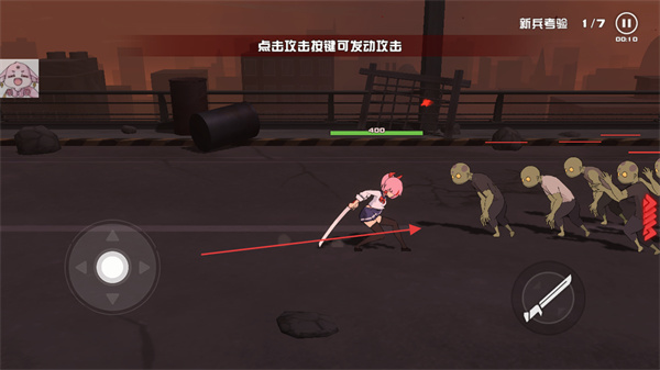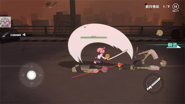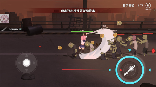 4、持續(xù)攻擊僵尸,完成連擊,消滅所有敵人后繼續(xù)前進(jìn),完成關(guān)卡。