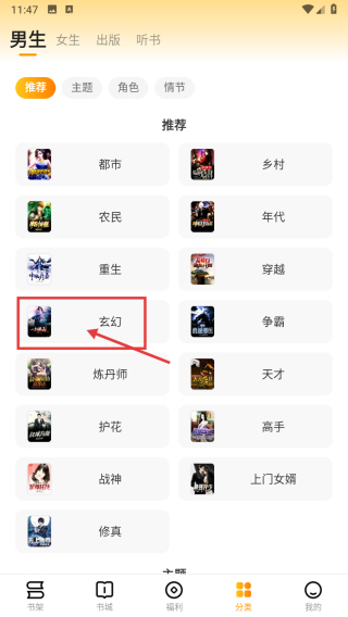 2、在分類頁面,點擊玄幻分類,進(jìn)入玄幻小說列表頁。