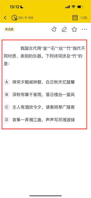 3、在答題頁面,根據(jù)題目選擇正確答案進(jìn)行作答。
