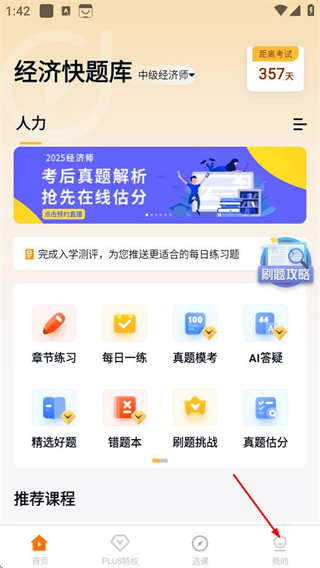 1、在經(jīng)濟(jì)師快題庫(kù)首頁(yè),點(diǎn)擊右下角我的選項(xiàng),進(jìn)入個(gè)人頁(yè)面。