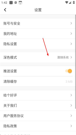 3、在設(shè)置頁(yè)面,點(diǎn)擊深色模式選項(xiàng),進(jìn)入深色模式設(shè)置頁(yè)面。